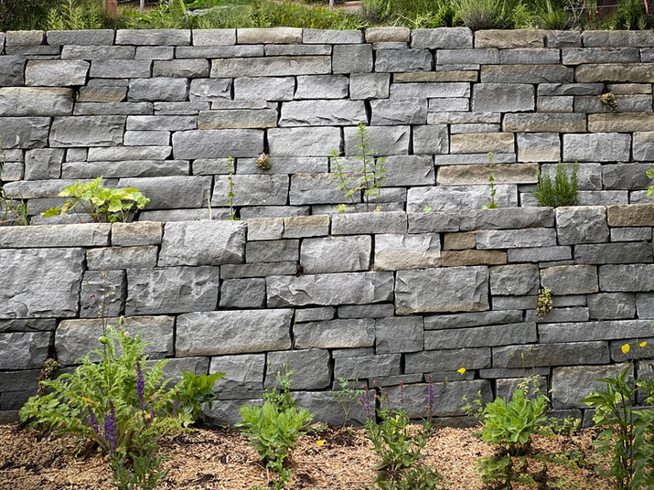 Steile Böschung aufgefangen, Terrassiert in drei Stufen, aufgefüllt mit